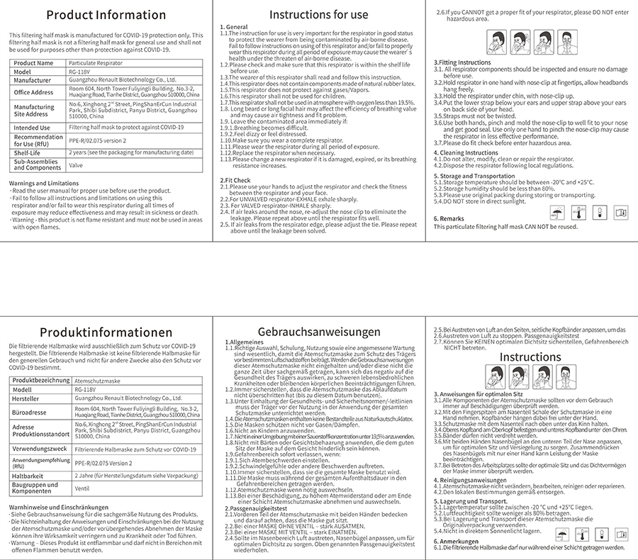 | Usage | 1. All respirator components should be inspected and ensure no damage before use. |