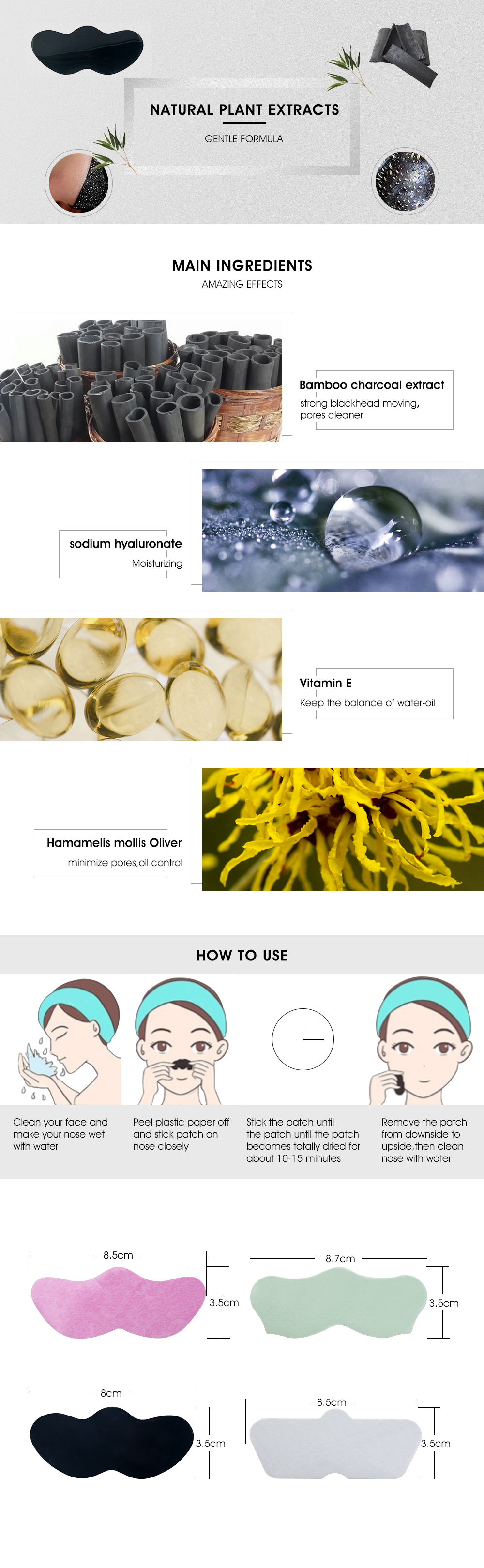 Main Ingredients : Bamboo charcoal extract sodium hyaluronate Vitamin E Hamamelis mollis Oliver