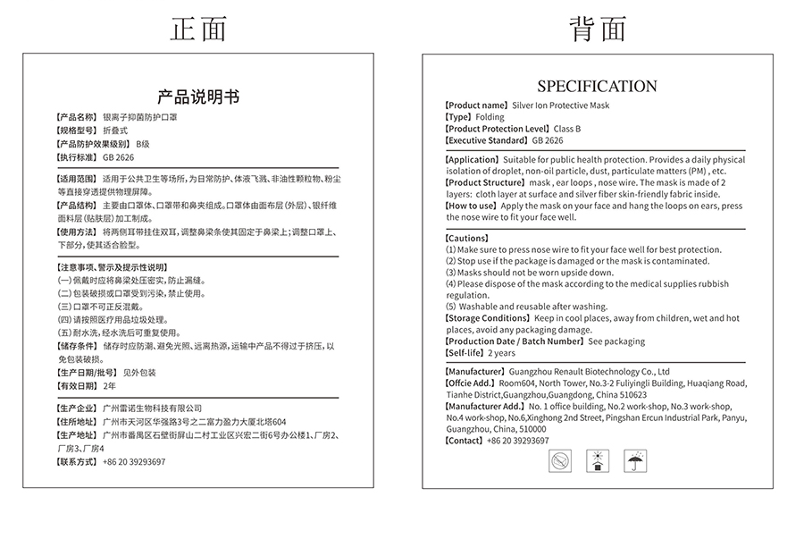 | Product Name | Silver Ion Protective Mask |